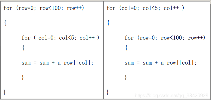 [建议4-4-1] 在多重循环中,如果有可能,应当将最长的循环放在最内层,最短的循环放在最外层,以减少CPU跨切循环层的次数。例如示例右的效率比示例左的高。