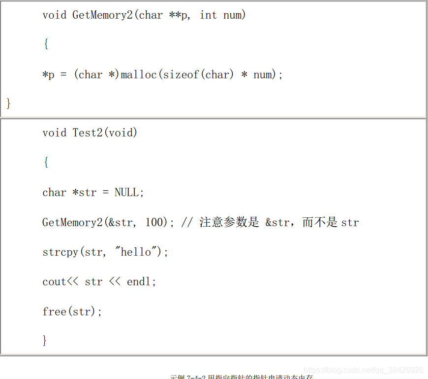 1、如果非得要用指针参数去申请内存,那么应该用“指向指针的指针”。