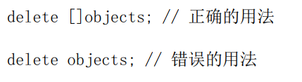 在用delete释放对象数组时,留意不要丢了符号‘[]’,例如