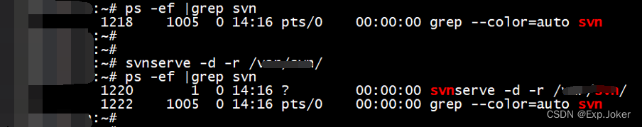 8. 运行命令ps -ef |grep svn查看SVN服务是否开启。
