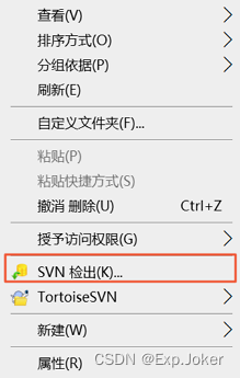 3.在弹出菜单中,选择SVN检出。