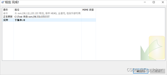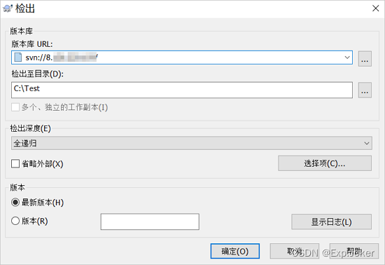 o 指定检出至目录。本文示例中,目录为C:\Test。