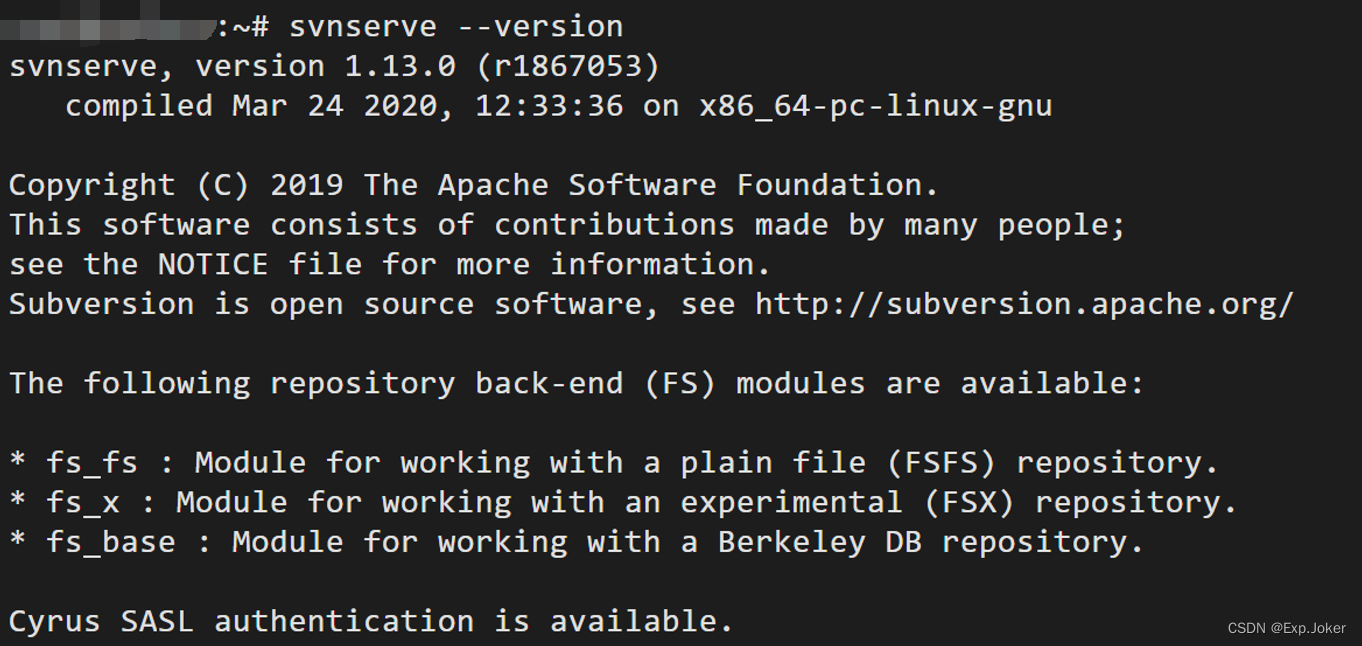3. 运行以下命令查看SVN版本。