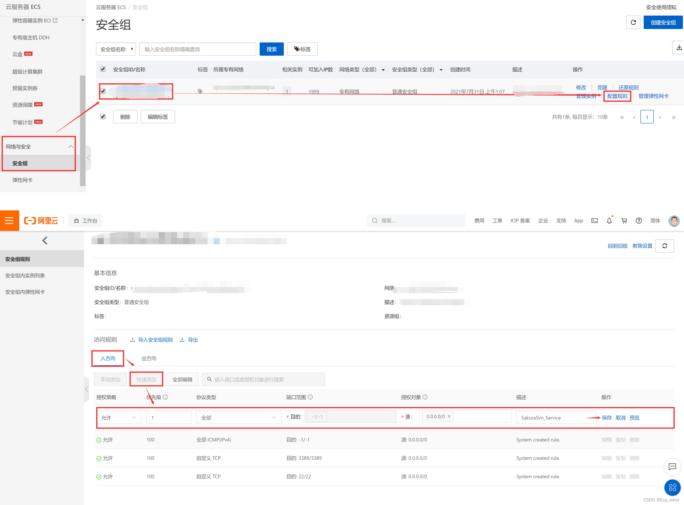 已在实例安全组的入方向添加规则并放行SVN服务的默认端口3690。