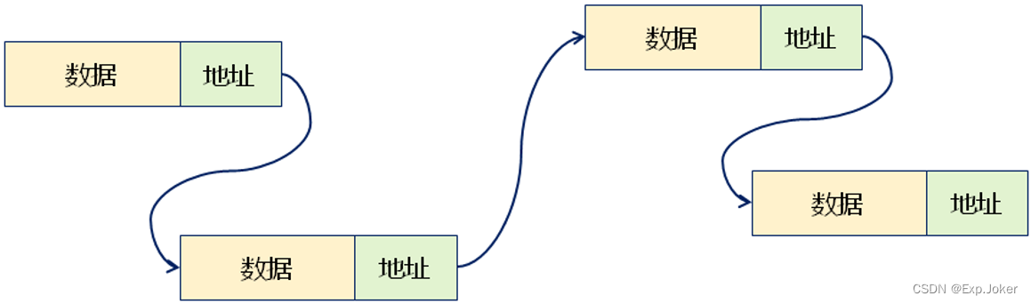 - 链表中代表数据元素的结点,表现形式为:(数据元素,地址)