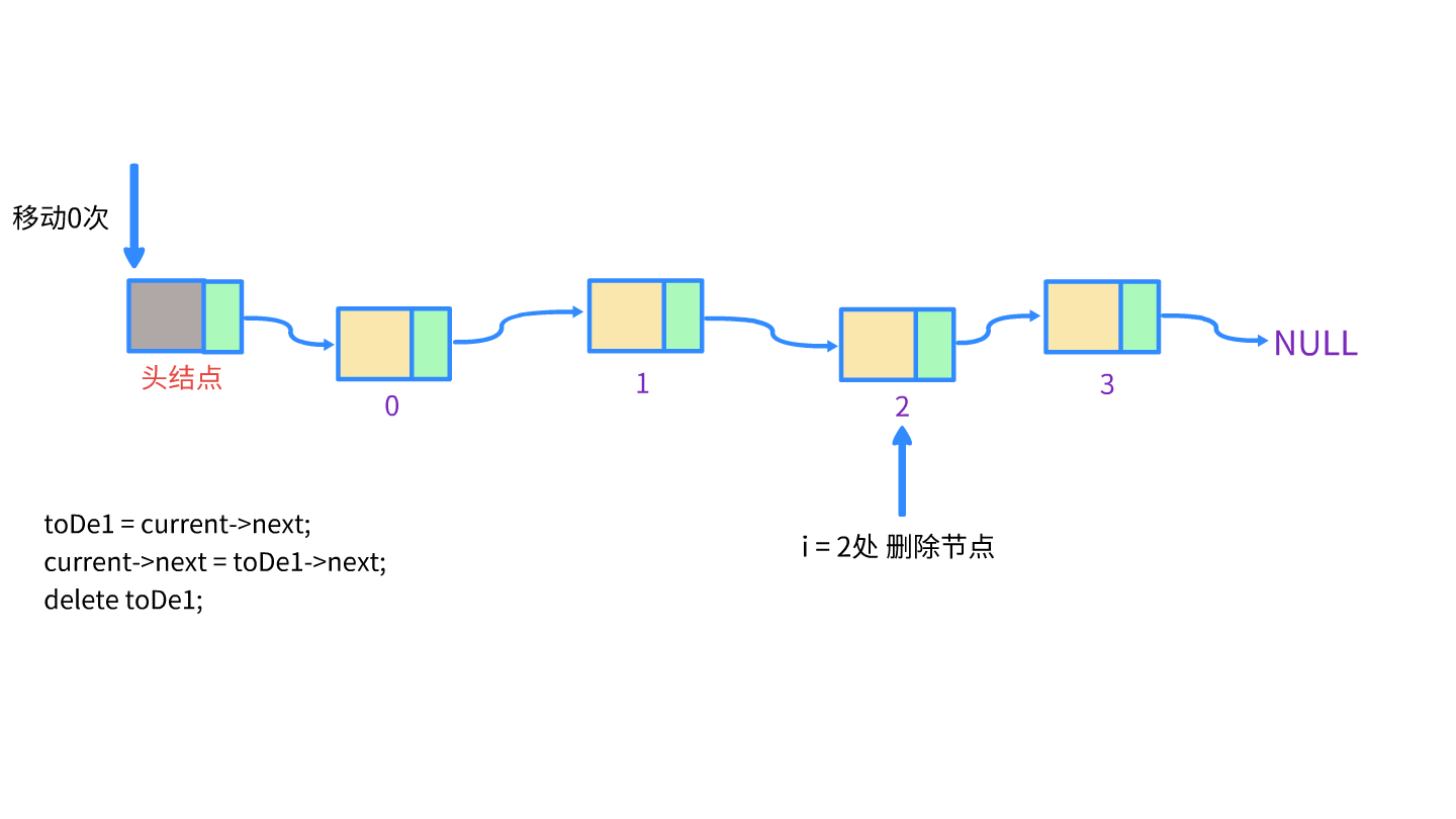 - 当删除某个结点之前,需判断游标是否也指向该结点。若是,则将游标指向下一个结点。