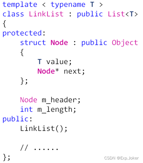 } m_header; // 创建头结点 不直接用 Node m_header,因为T有可能是类,在类运行构造函数时,可能会抛出异常