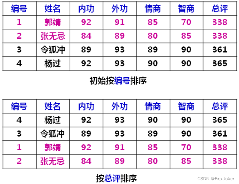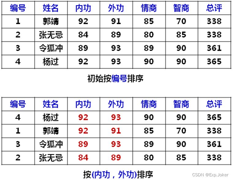 - 当关键字n-1相同时按关键字n进行排序