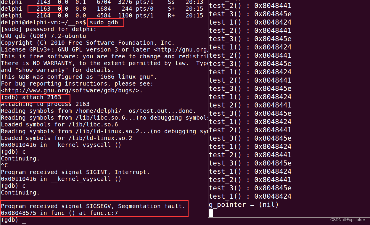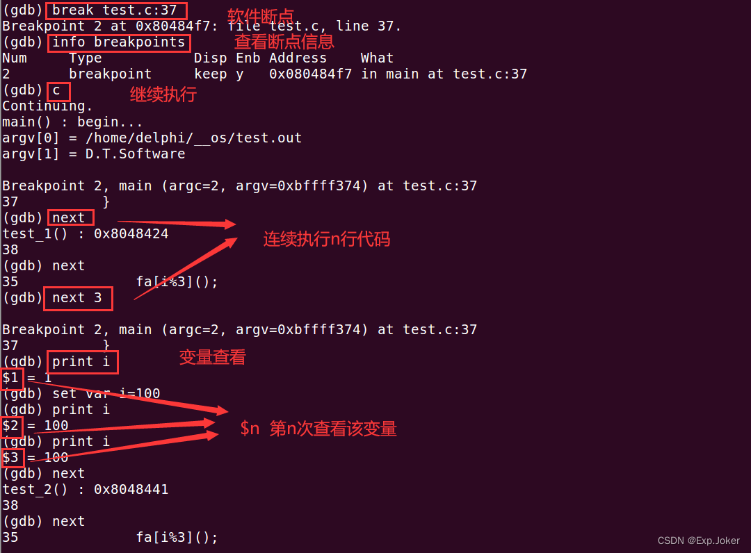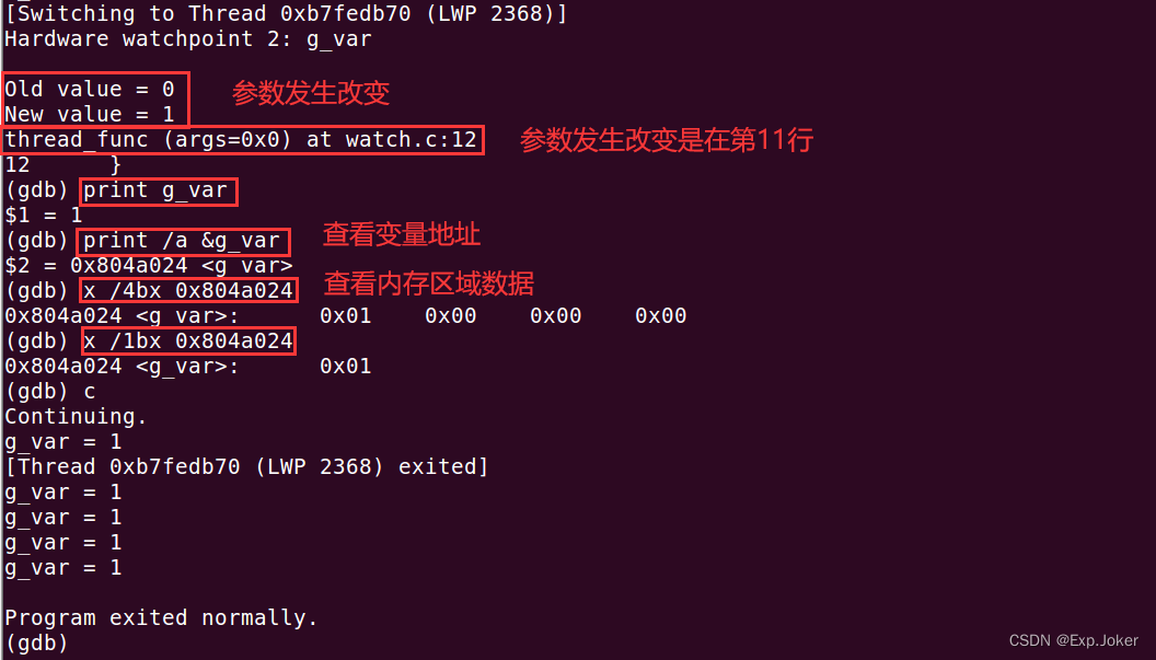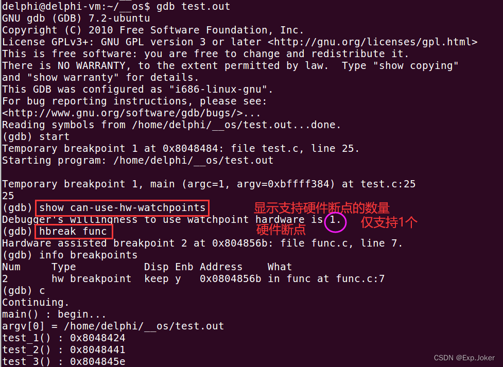 - GDB支持数据断点的设置(一种类型的硬件断点)
