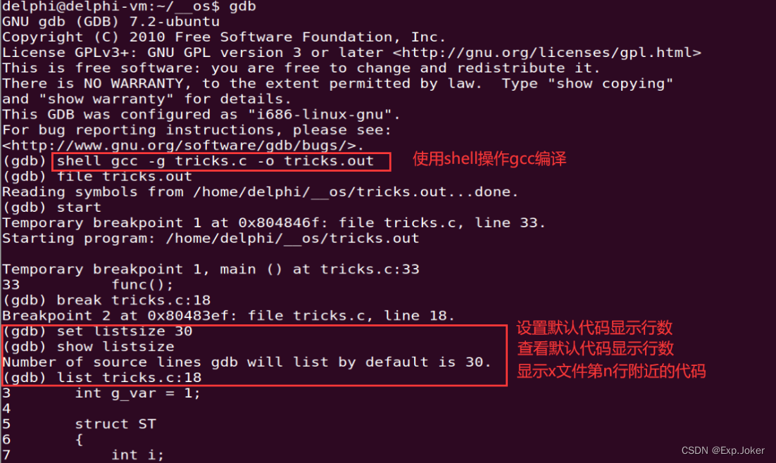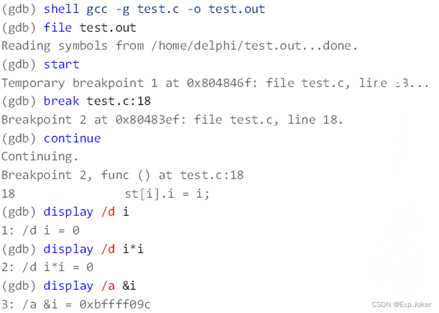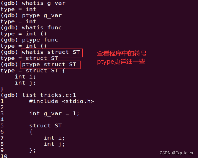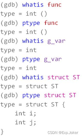 - GDB支持运行时对程序中的符号进行查看(whatis, ptype)