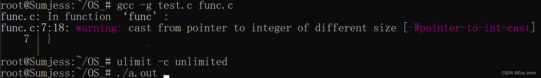 ulimit -c unlimited 程序崩溃时,产生core文件。