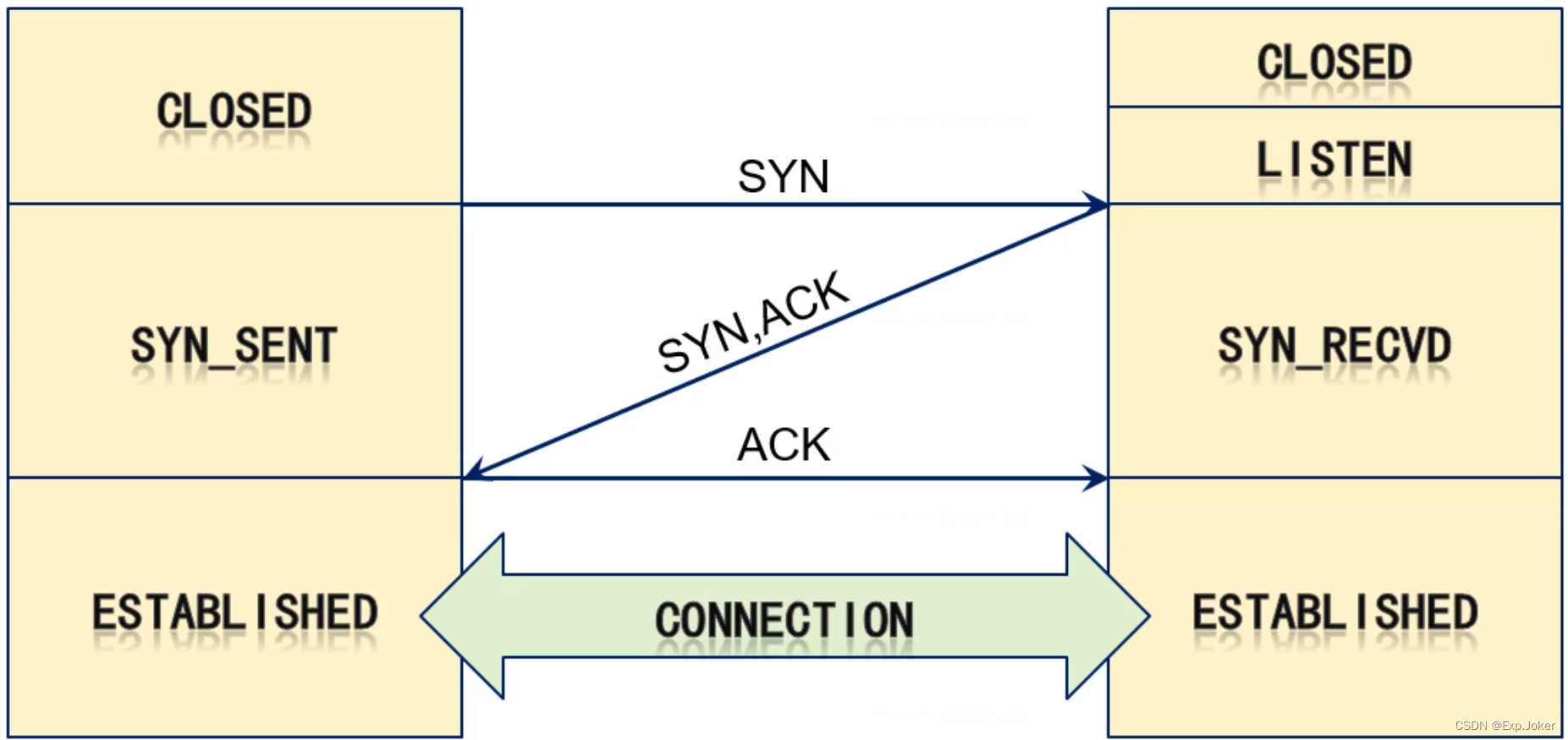 三次交互结束后,连接建立!为什么是3次? 相互发送消息,都获得了回应