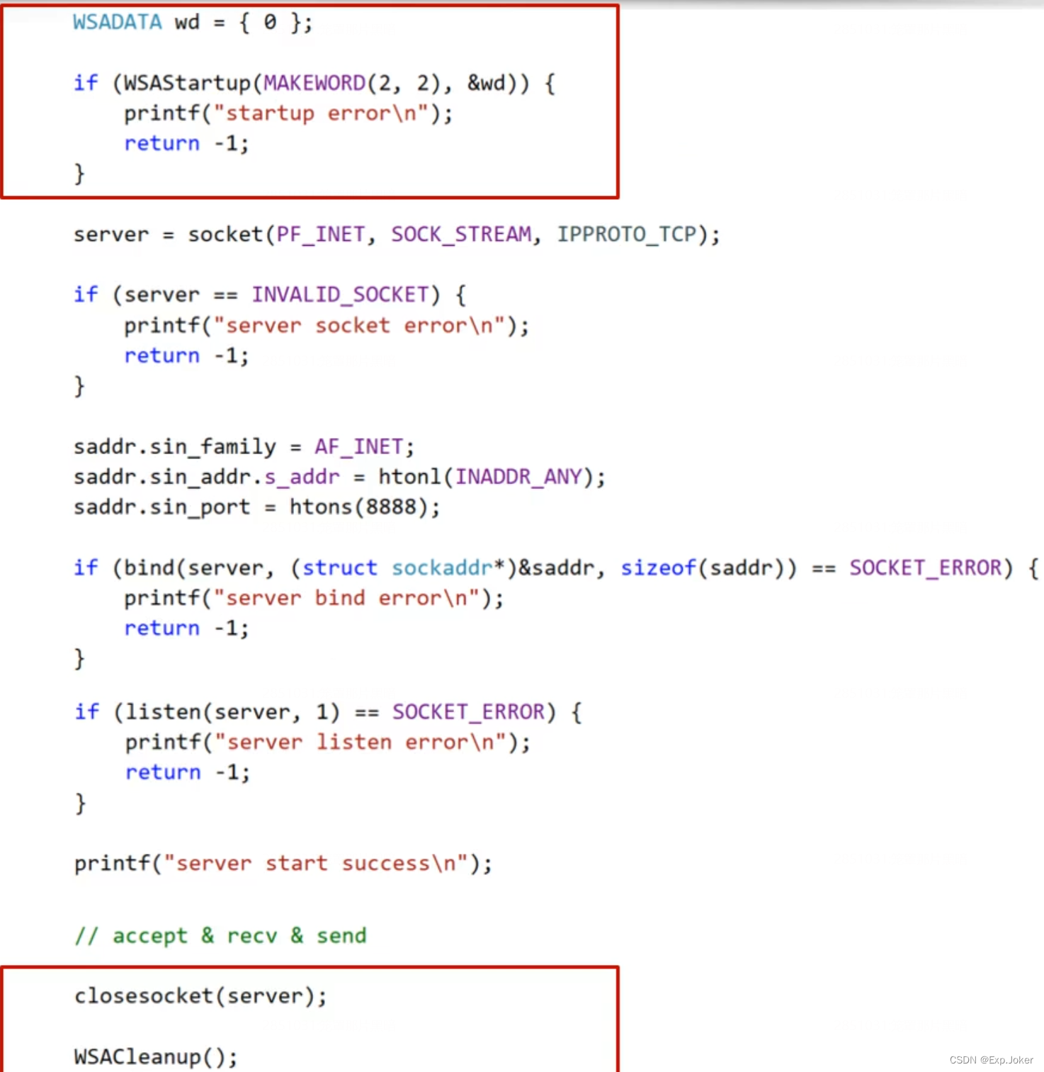 - socket(), accept()错误返回INVALID_SOCKECT(不可默认为-1)