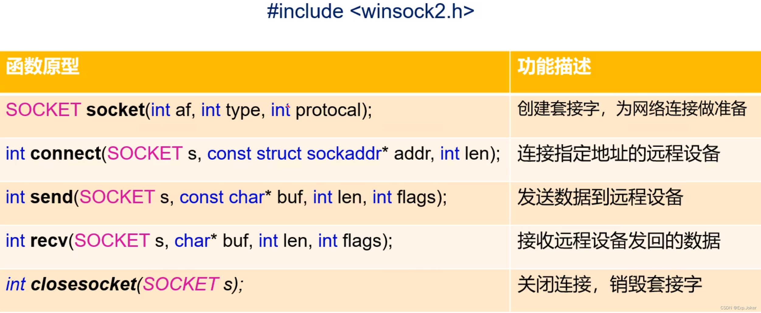 - 通过WSAStartup()初始化系统环境(最先调用)
