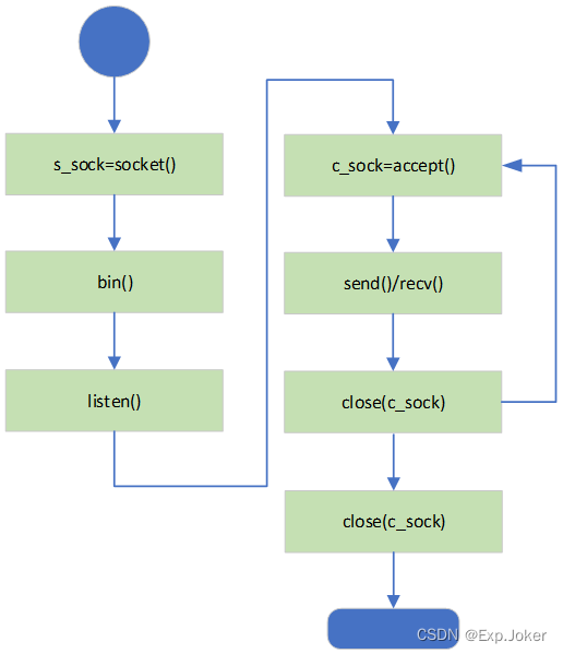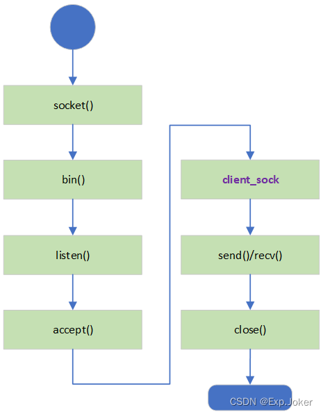 - 当接收到连接时,accept()函数返回与客户端通信的socket