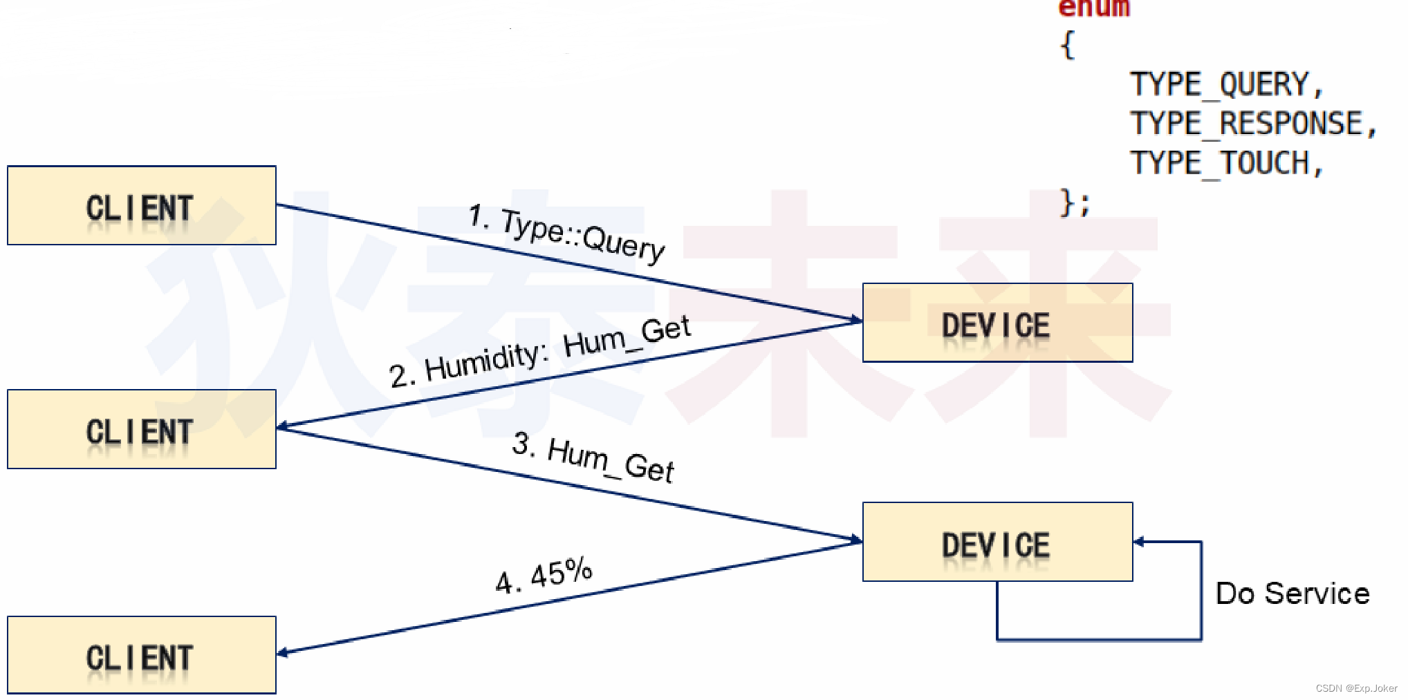 - 客户端根据收到的服务用法向设备发起请求(字符串描述)
