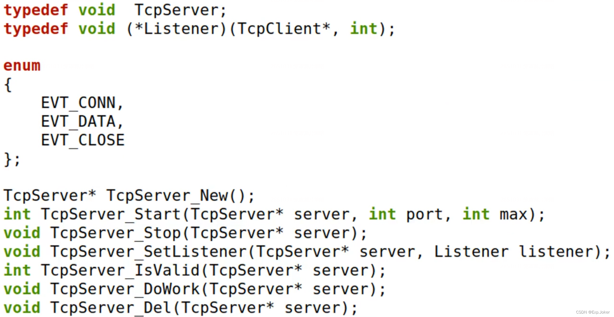 - 事件回调: void (*Listener)(TcpClient*client, int event);