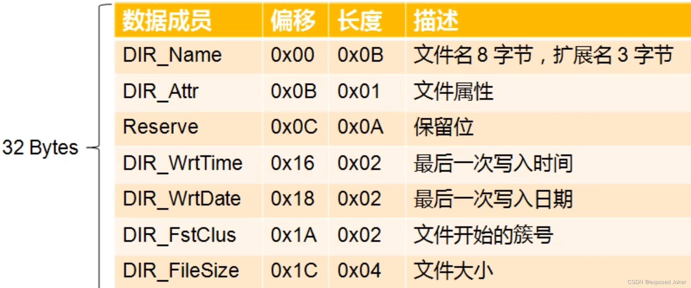 - DIR_FstClus表示文件第0簇(扇区)的位置