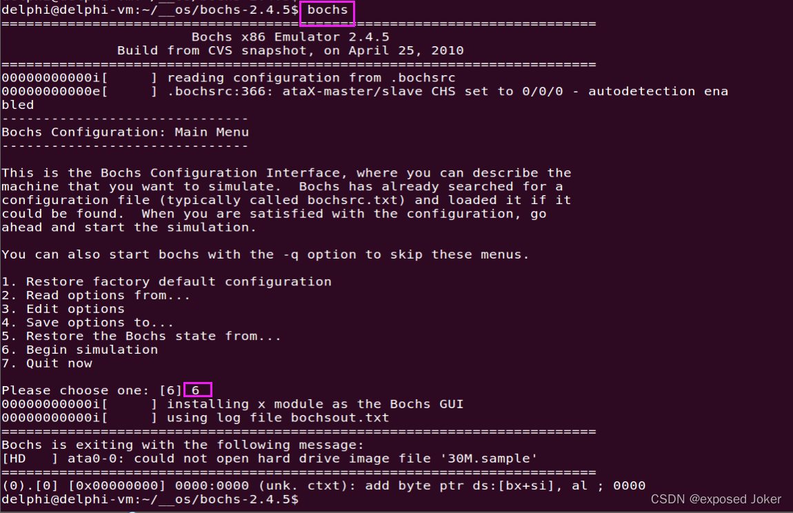 解压缩bochs-2.x.x.tar.gz →bochs-2.x.x