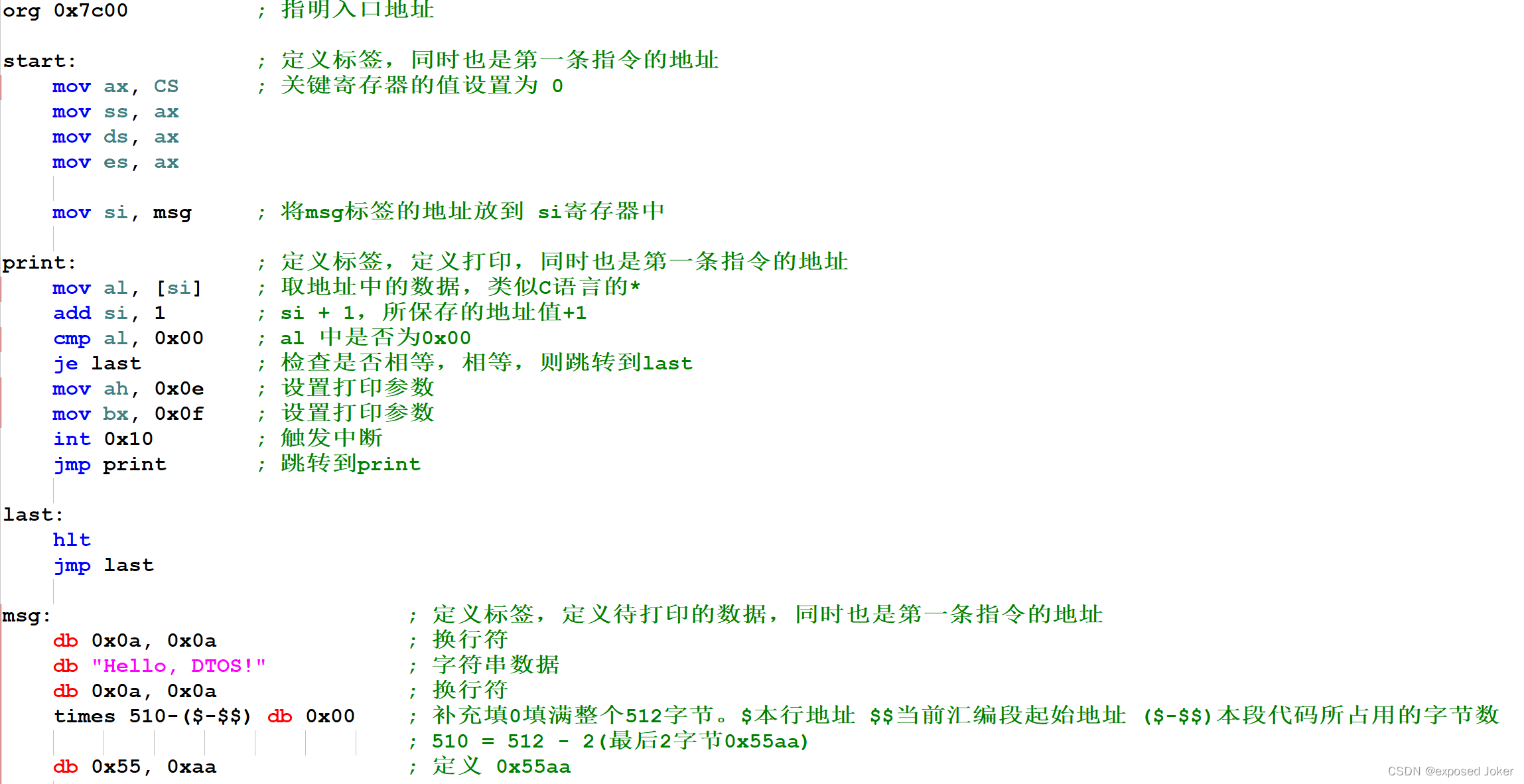 - 代码总量不能超过512个字节(包含0x55aa)