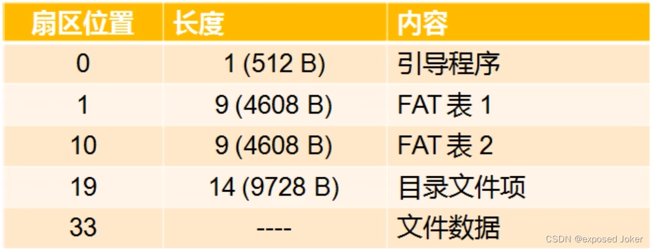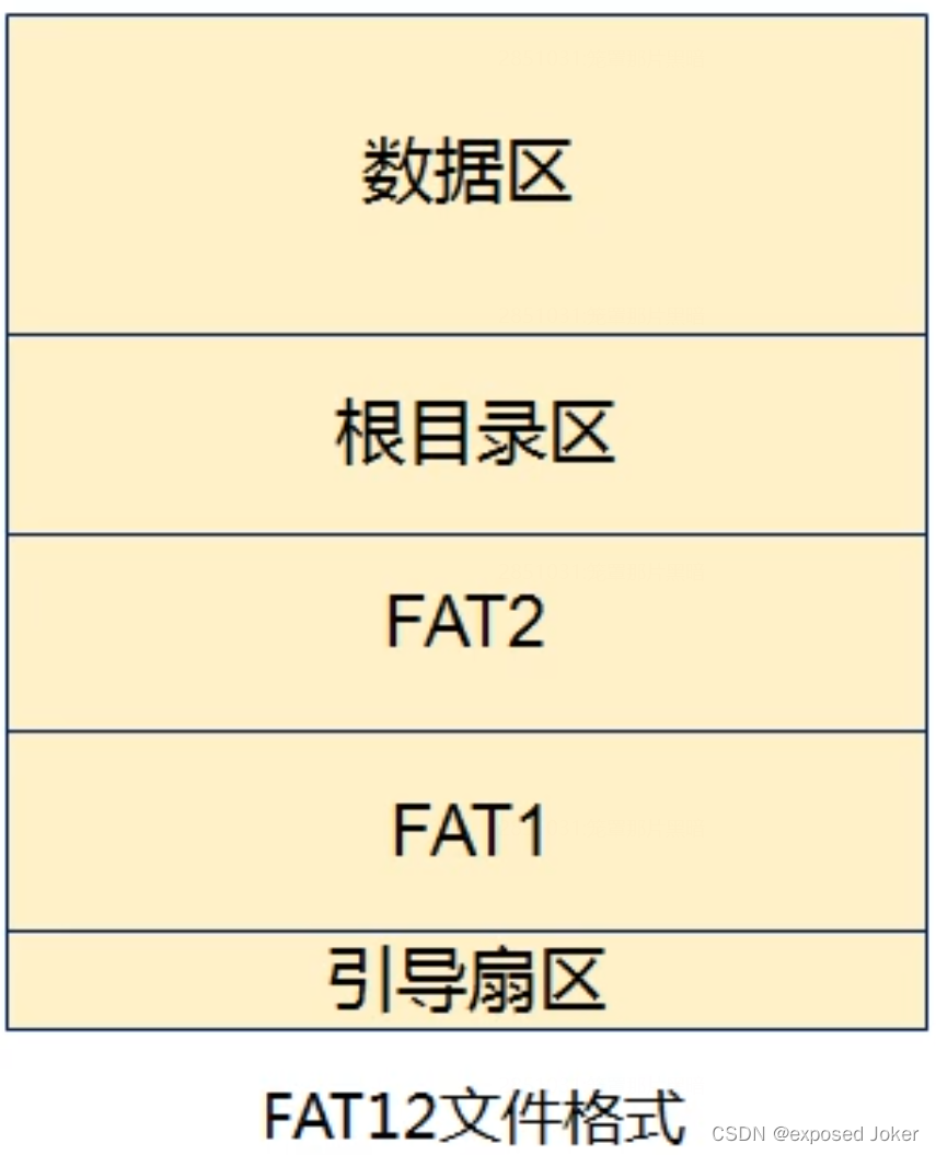 FAT12文件系统由引导区,FAT表,根目录项表和文件数据区组成。