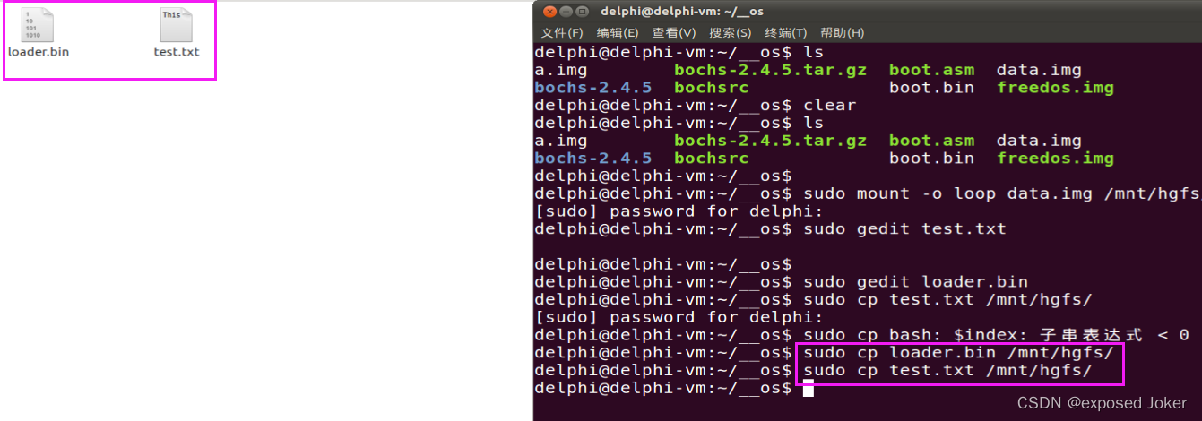 - 编写可执行程序(Loader)并将其拷贝到软盘中