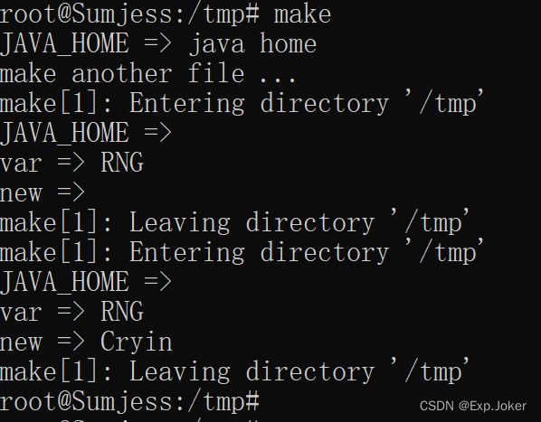 - 定义了同名变量,环境变量将被覆盖(这个时候在其他makefile里也会受影响)