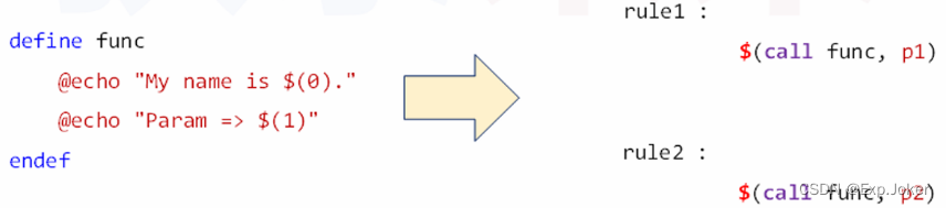 - makefile 中的自定义函数是代码复用的一种方式