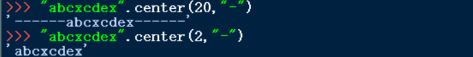 ⑤ str.center(width,fillchar)方法返回长度为width的字符串。其中str处于新字符串的中心位置,两侧新增字符采用fillchar填充。