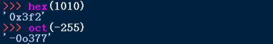 (4)hex(x)和oct(x)函数分别返回整数x对应十六进制和八进制值的字符串形式,字符串以小写形式。