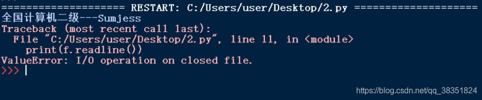 f.close()一个文本文件a.txt,其内容为“全国计算机二级---Sumjess”,采用二进制方式打开。