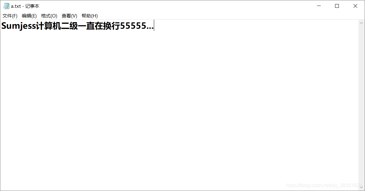 一个文本文件a.txt,其内容为“全国计算机二级---Sumjess”,采用文本方式打开。这里需要将文本文件与python程序文件放在同一个目录中。