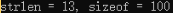 char buf9[100] = "agjdslgjlsdjg"; printf("strlen = %d, sizeof = %d\n", strlen(buf9), sizeof(buf9));