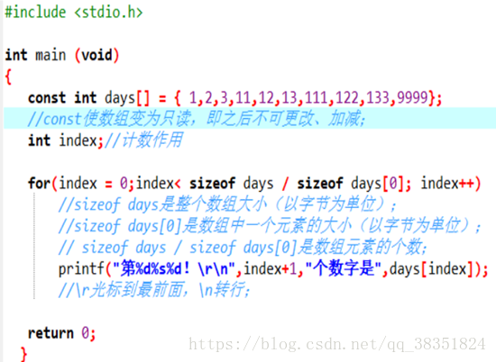 ④ 使用const声明数组:有时需要把数组设置为只读。这样修改后,程序在运行中就不能修改该数组中的内容。