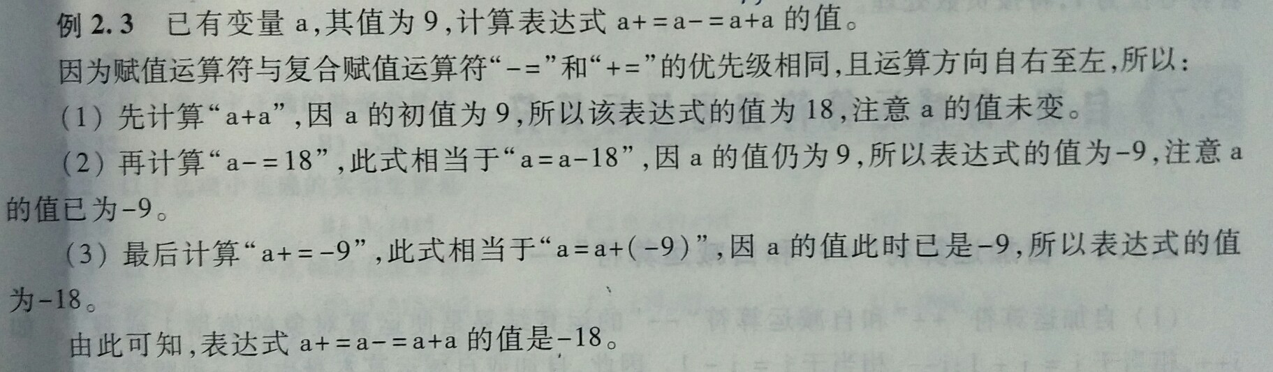 注:复合赋值运算符和赋值运算符的优先级相同。