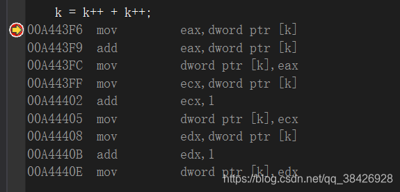 }k = k++ + k++; // ((k+k)++)++ 注意:每个编译器可能不同
