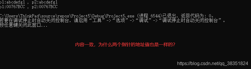 问题:内容一致, 为什么两个指针的地址值也是一样的?