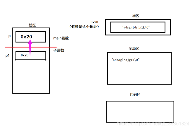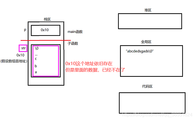 char str[] = "abcdedsgads"; //str在栈区,字符常量在全局区