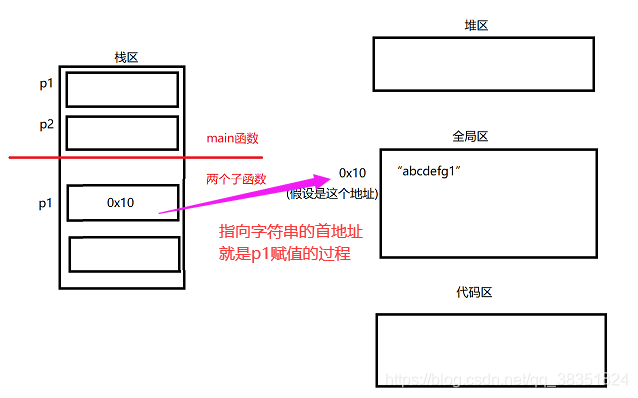 ④ 程序执行到 p1 = getStr1(); 由于个人原因在全局区中应该为“abcdefg1\0”
