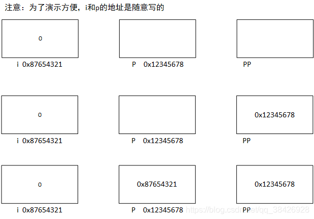 printf("%p, %p, %d\n", pI, &i, i); // i的地址 i的地址 i的值