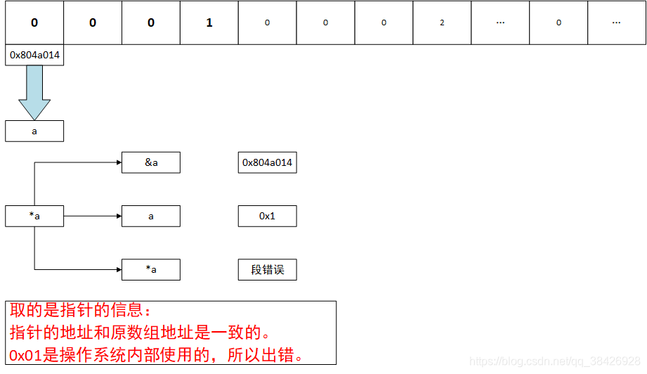- 在指针使用时,*号表示取指针所指向的内存空间中的值