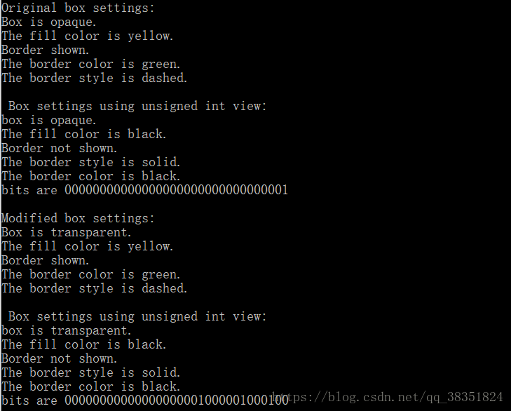 printf("\n Box settings using unsigned int view:\n");