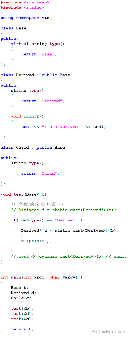 - 基类指针是否可以强制类型转换为子类指针取决于动态类型!