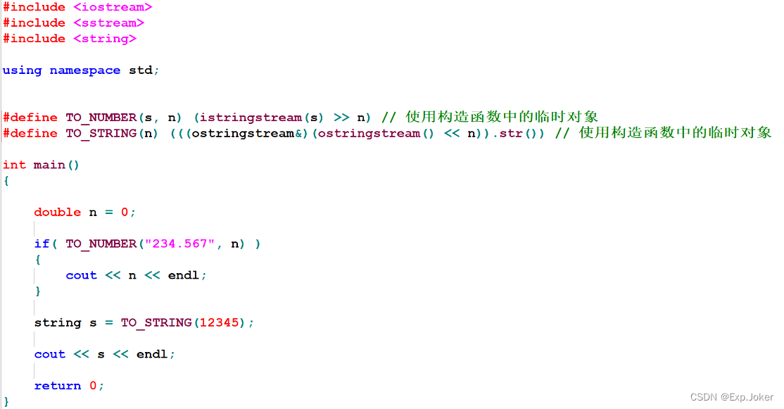 - 字符串流类(sstream)用于string的转换