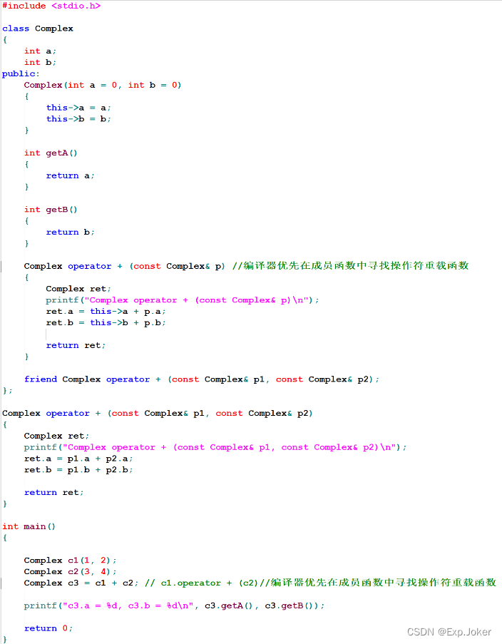 - 复数中的运算操作可以通过操作符重载实现