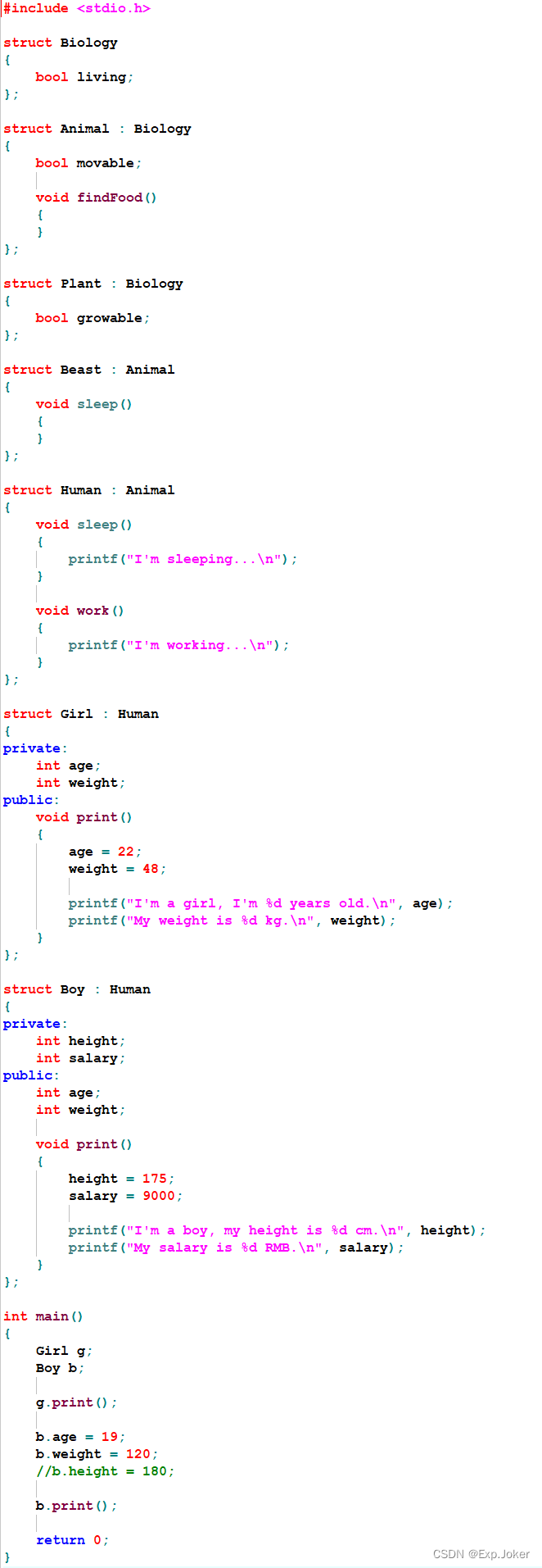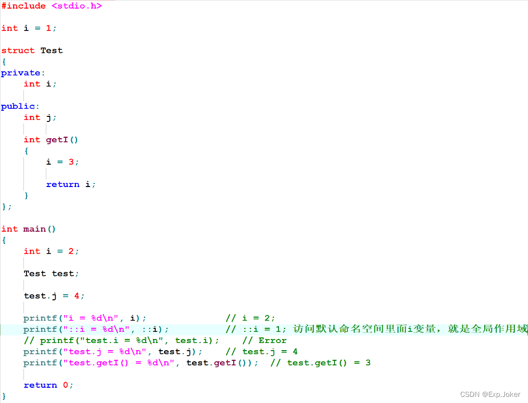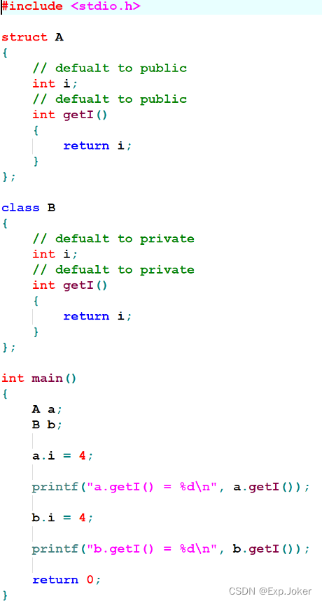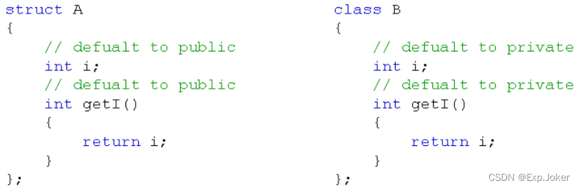 - 在用struct定义类时,所有成员的默认访问级别为public