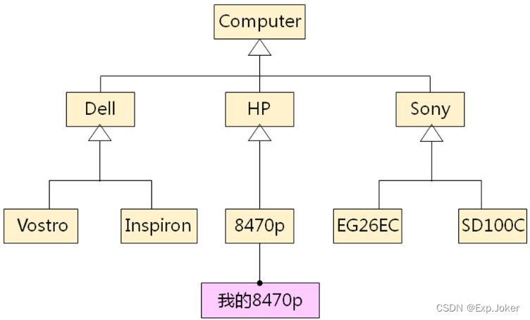 - 从已存在类细分出来的类和原类之间具有继承关系( is-a )