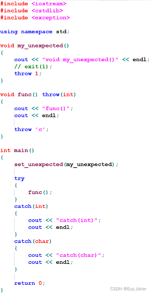 函数抛出的异常不在规格说明中,unexpected()被调用