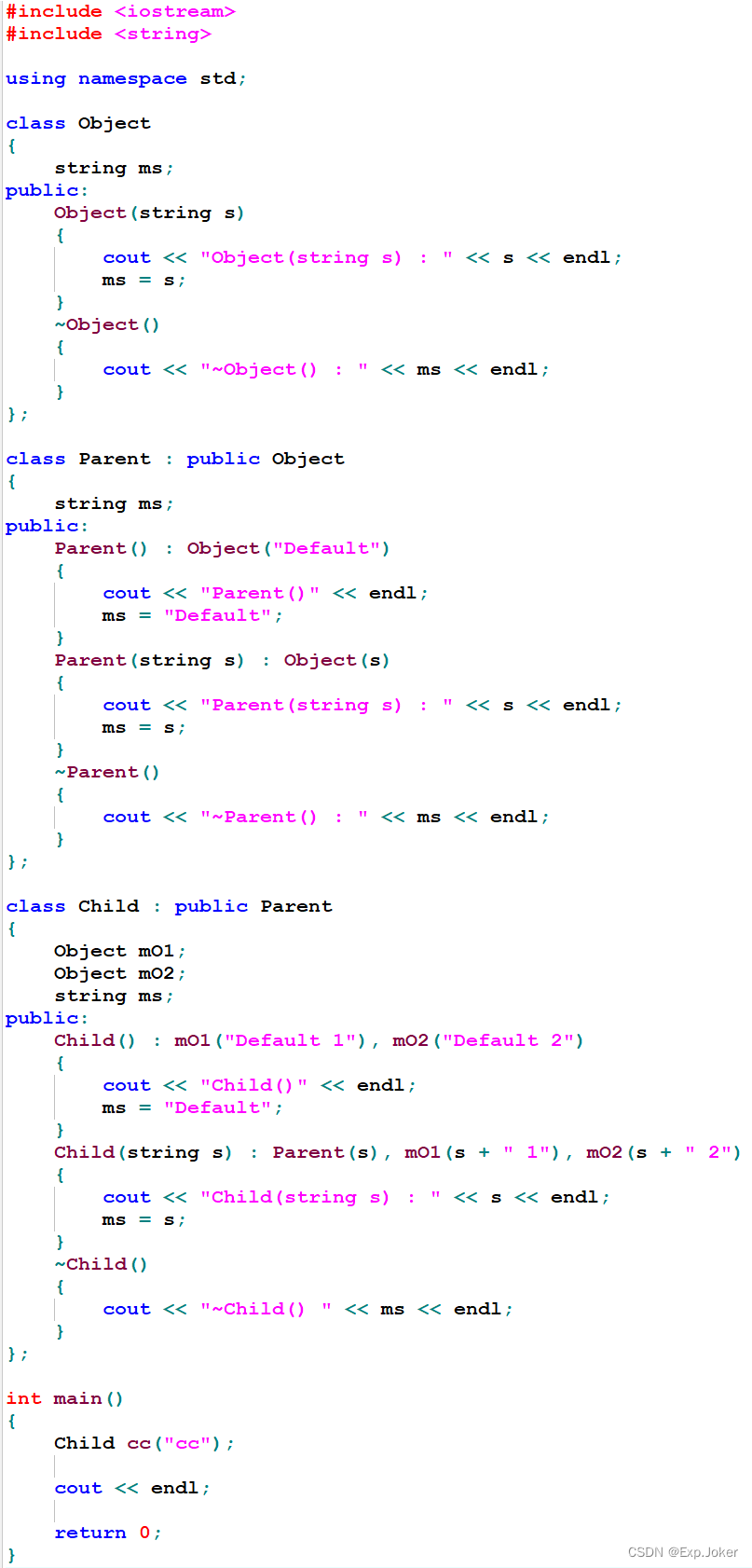 - 析构顺序与构造顺序对称相反