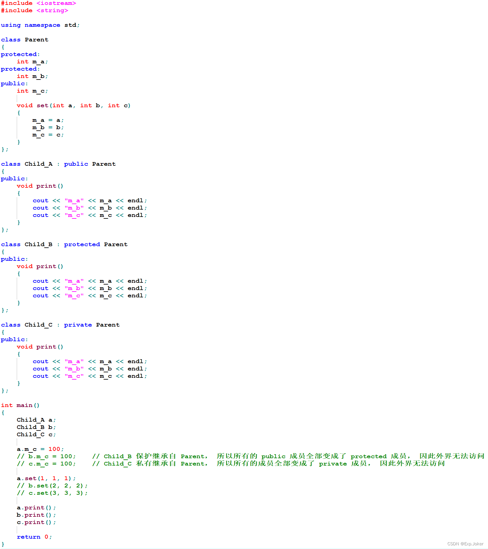 - C++中支持3种不同的继承方式